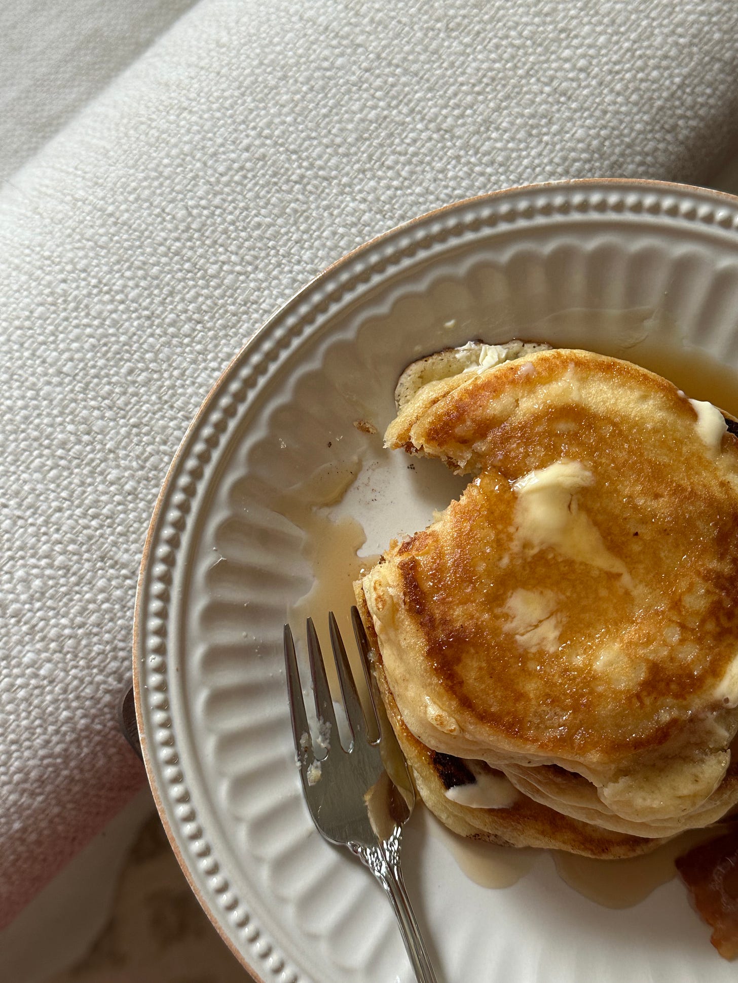 As I soaked up as much syrup as I could on my last bite, stacked three high, I smiled to myself that one day, Kit might request them, she might find comfort in them. They might be big memories in her childhood, plates of syrup and butter and cartoons and pajamas past lunchtime.